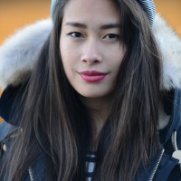 wearing the Airforce Blue Down Jacket